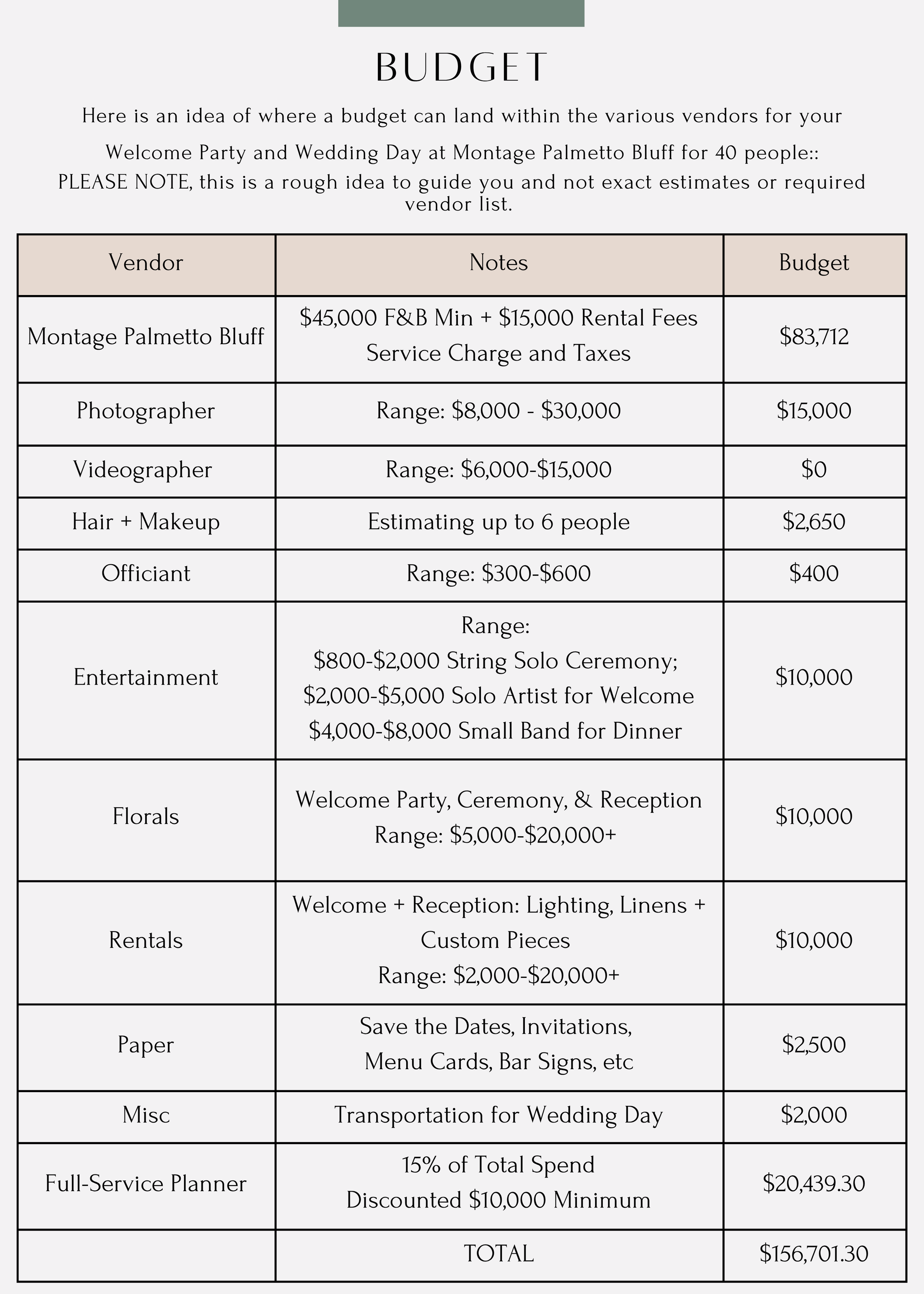 Managed Budget & Vendor Payment Tracker: Receive a tailored budget outline aligned with your wedding vision. We'll consistently update and oversee all vendor payments, ensuring the financial aspects of planning are transparent and clear from Day 1.