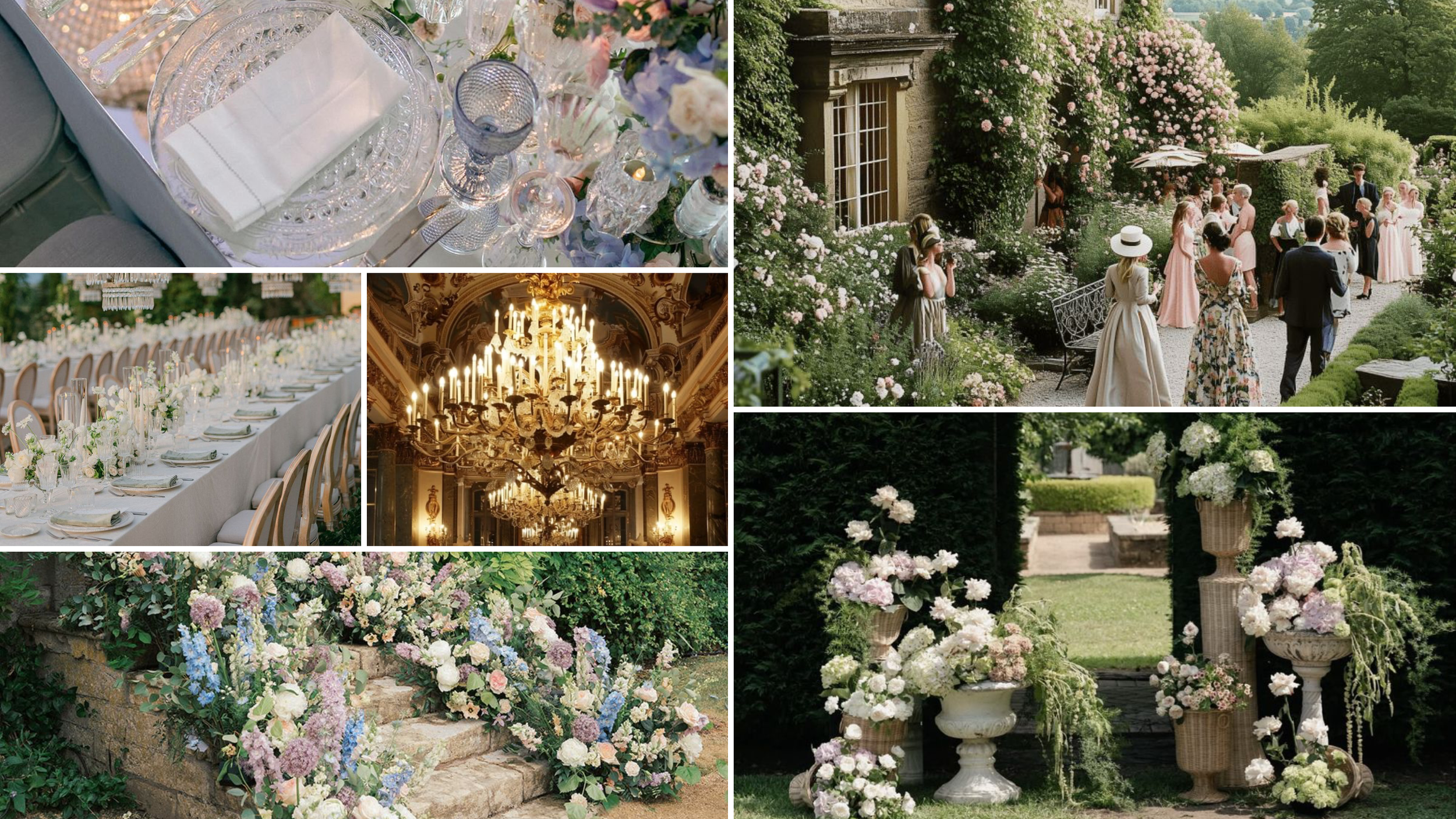 Our tablescapes would be highly elevated to match the double 5-Star + Michelin Two-Key hotel. We’d opt for florals that are overflowing from a well-manicured seaside garden escape, with hydrangea, sweet pea, cosmos, garden roses and dahlias. Our color palette would have soft brown, wood tones included in the tufted chairs, along with a garden mix of pastel purple, buttery soft yellows and light blues. An elegant layering of patterned linens, antiqued silverware and a china collection that even the Vanderbilts would marvel over would send our design over-the-top.